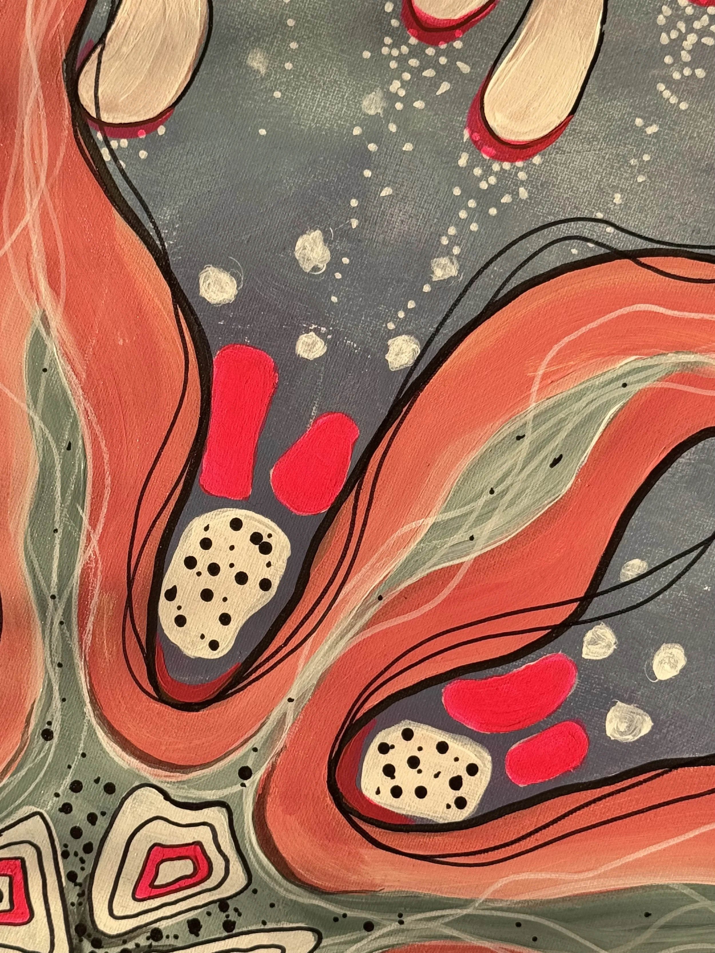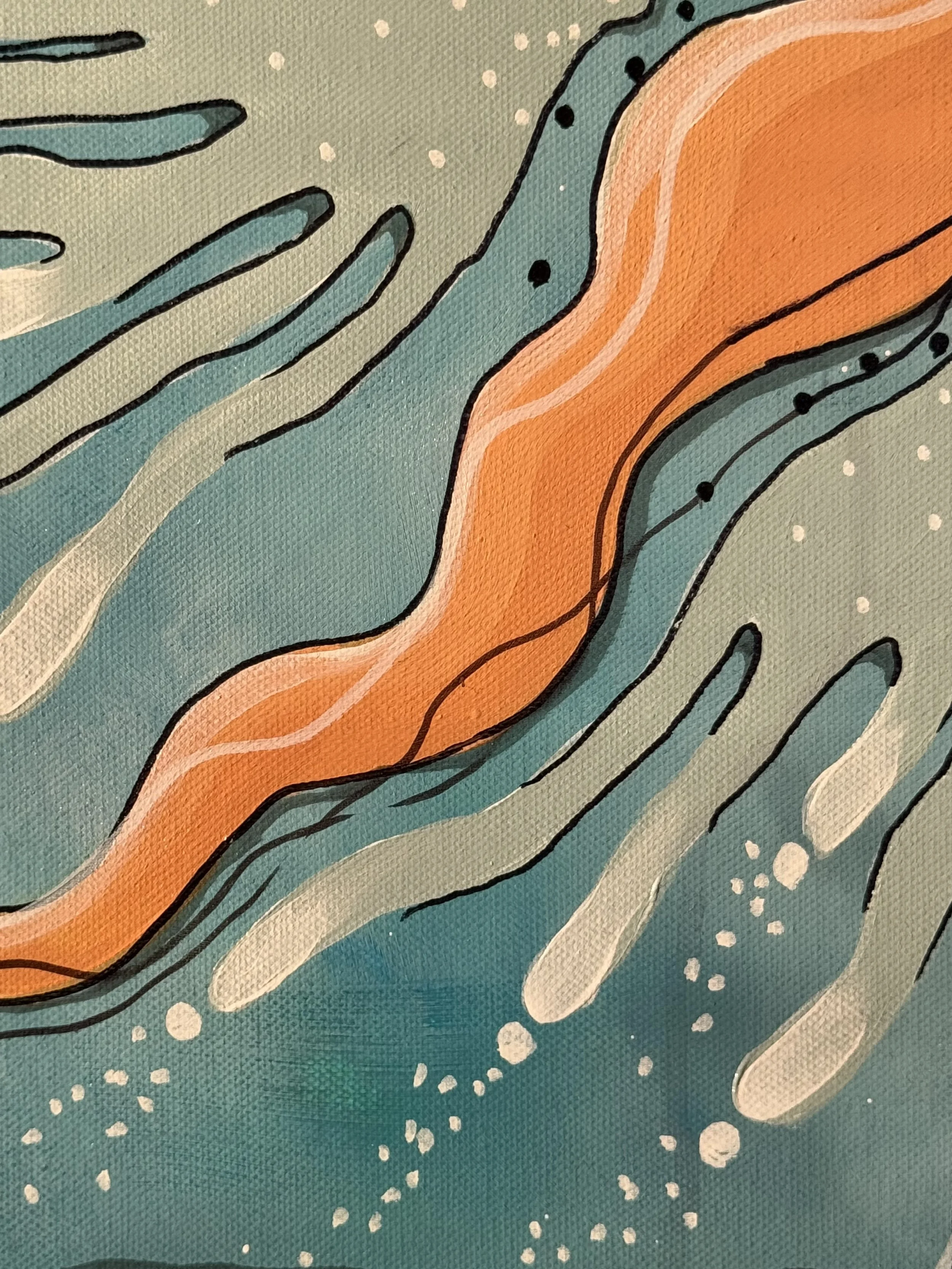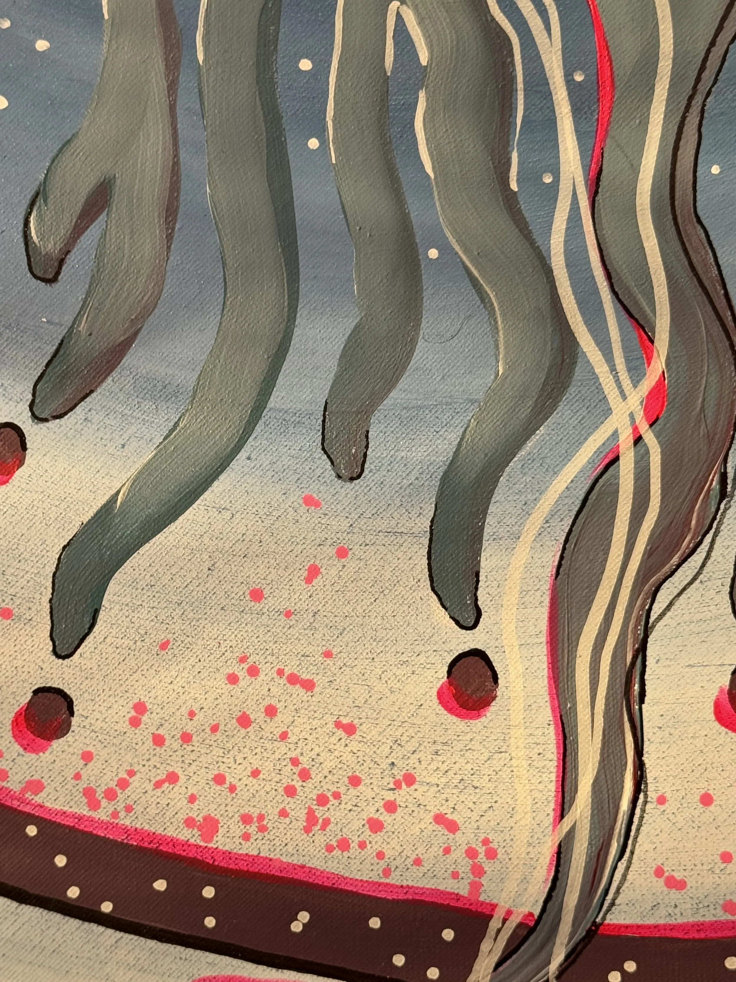 My work grows from emotion and instinct, shaped by lines and figures that feel alive and full of movement, without being tied to a fixed style. Surrounded by calm, muted landscapes and long periods of darkness, I began to feel a strong need for color and light. Painting became a way to bring brightness into my daily life and awaken my “inner sun” — the energy, warmth, and clarity that were missing in my environment. For me, color is presence: bold, expressive, sometimes intense. It carries emotion and fills the spaces where the outside world feels quiet or dim.