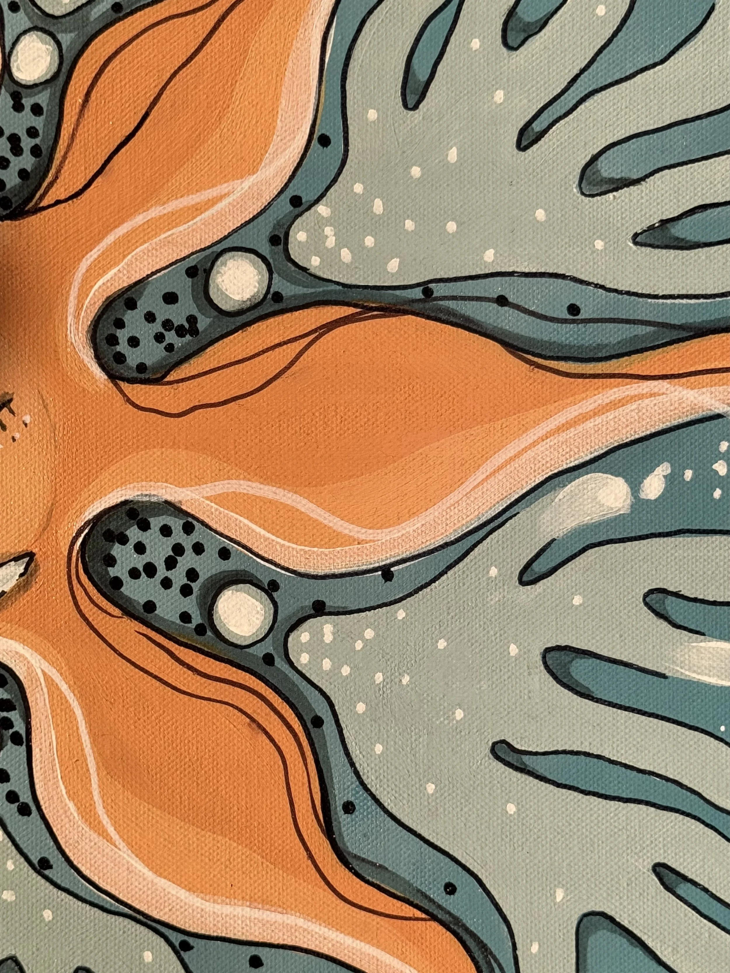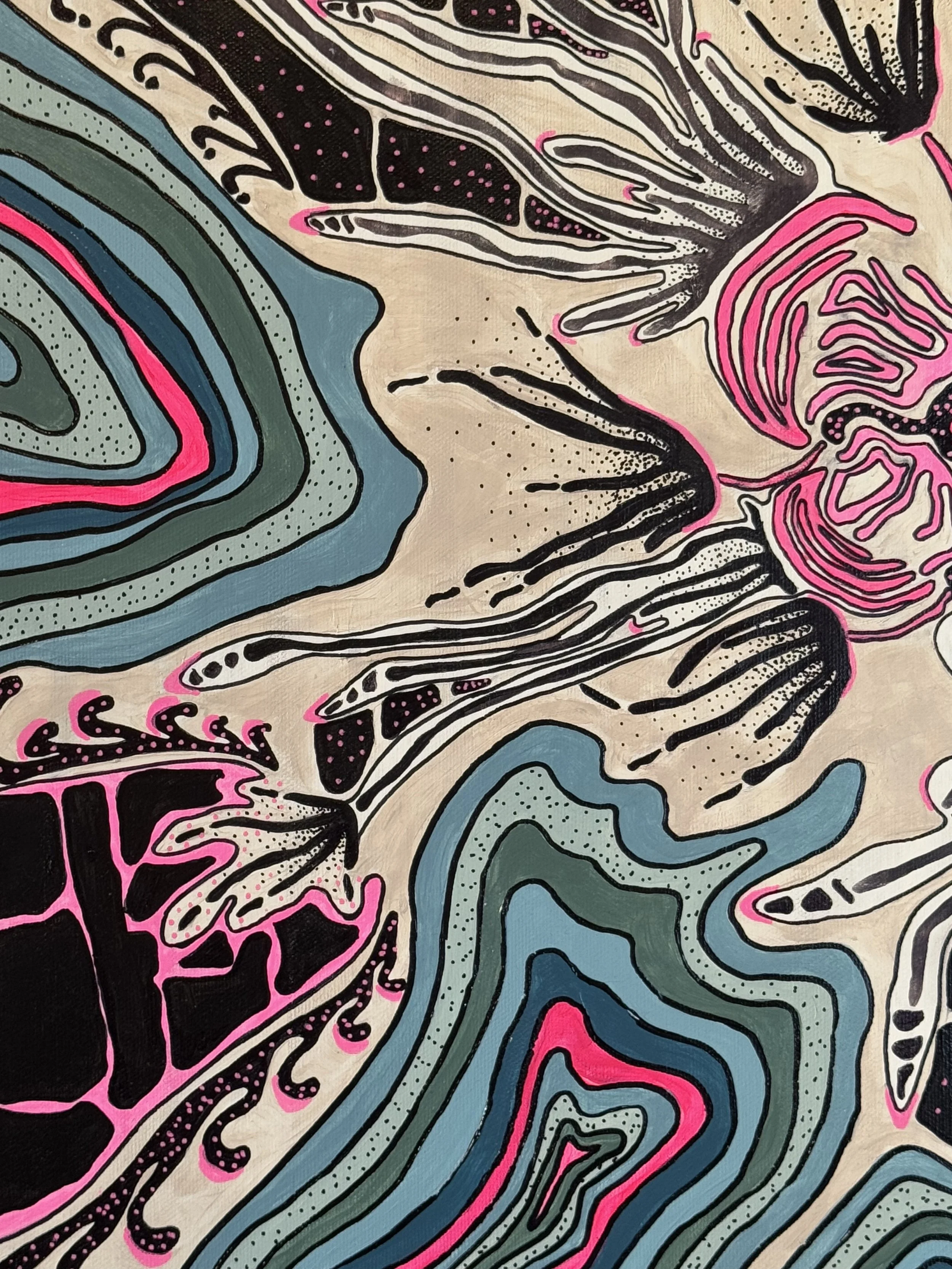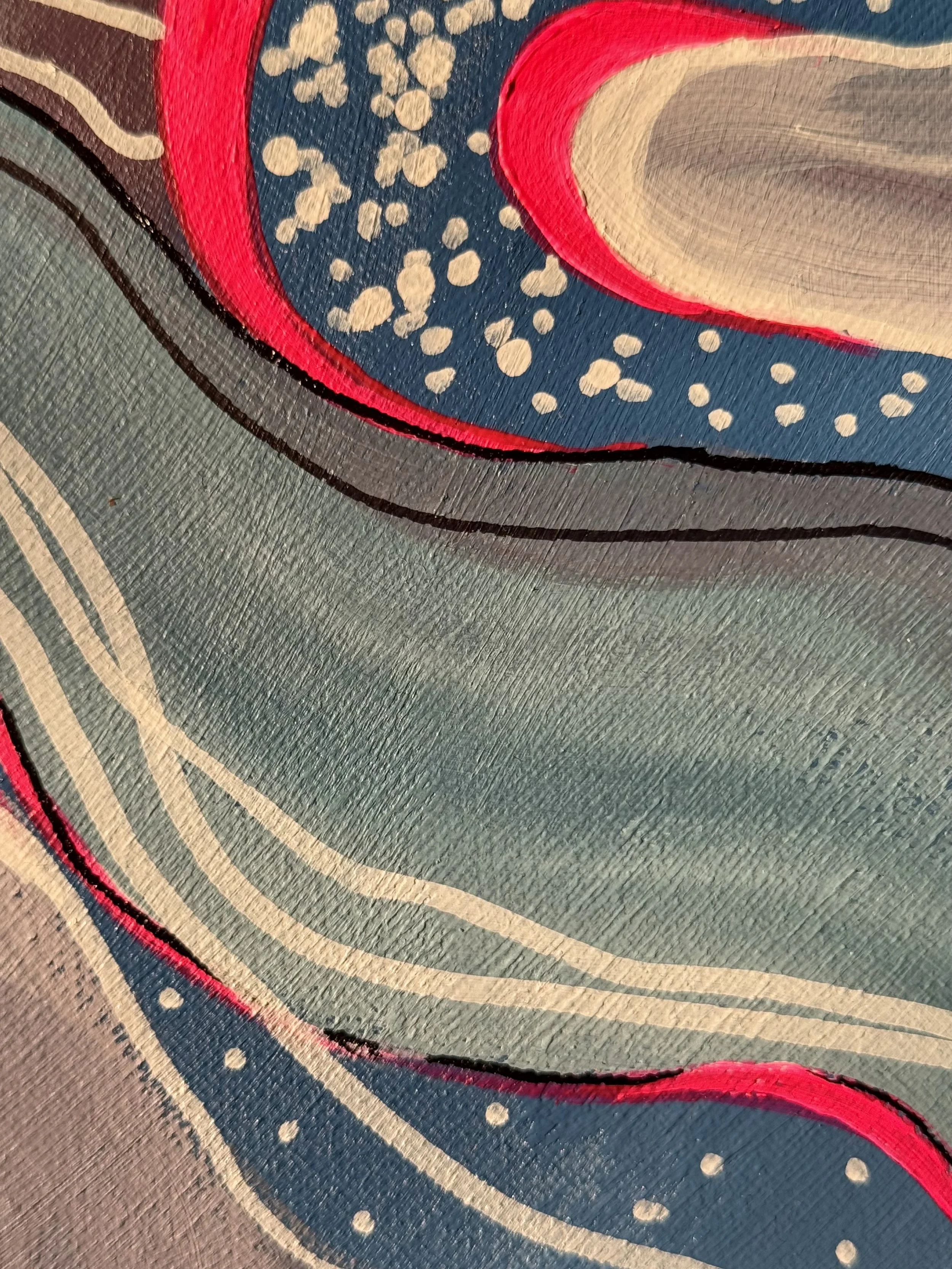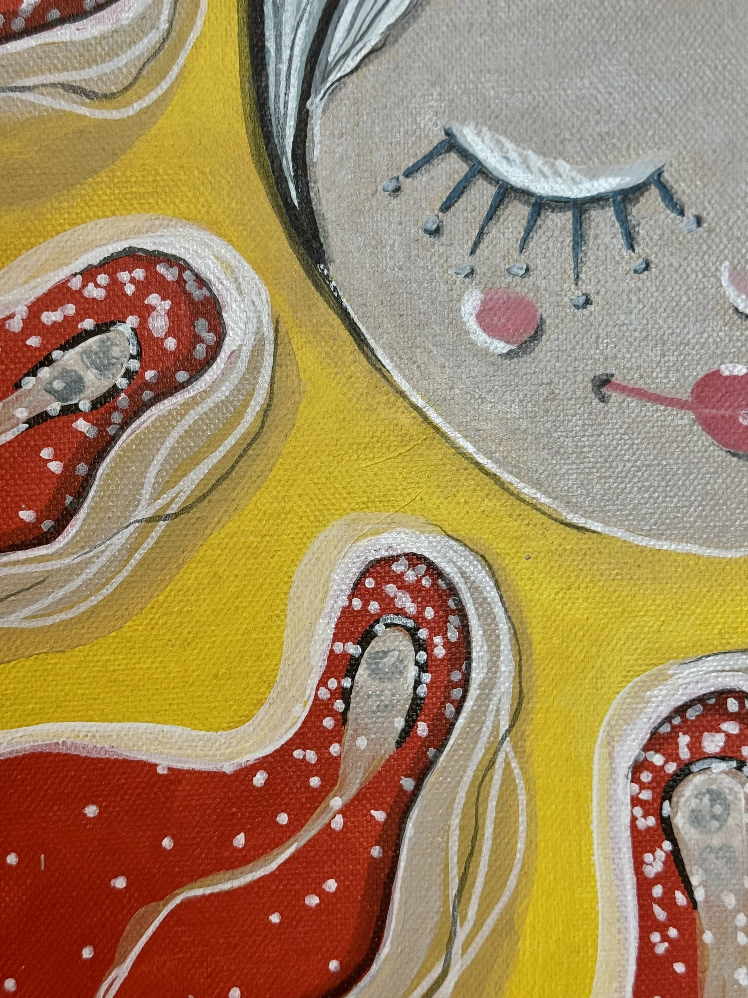 My work grows from emotion and instinct, shaped by lines and figures that feel alive and full of movement, without being tied to a fixed style. Surrounded by calm, muted landscapes and long periods of darkness, I began to feel a strong need for color and light. Painting became a way to bring brightness into my daily life and awaken my “inner sun” — the energy, warmth, and clarity that were missing in my environment. For me, color is presence: bold, expressive, sometimes intense. It carries emotion and fills the spaces where the outside world feels quiet or dim.